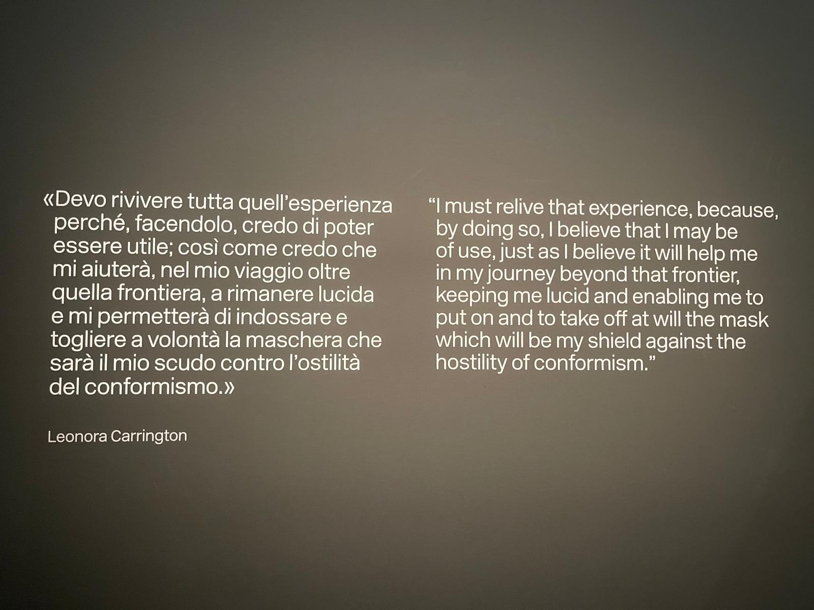 Il progetto espositivo restituisce la ricchezza poliedrica di Carrington nella prima mostra monografica mai presentata in Italia: artista transnazionale ed extraterritoriale, madre, esule, intellettuale radicale e instancabile esploratrice della coscienza. La sua ricerca trova straordinarie risonanze nelle tematiche contemporanee ed ha avuto un'eco postumo eccezionale, specialmente dopo la sua inclusione nella Biennale di Venezia del 2022, che ha preso come titolo e motto un suo racconto: Il latte dei sogni. Questa mostra vuole proseguire quel percorso di affermazione e riconoscimento, celebrando Leonora Carrington come una delle artiste più influenti e rivoluzionarie del XX secolo, capace di dialogare con le nuove generazioni e di stimolare riflessioni profonde sul ruolo dell’arte e della conoscenza.